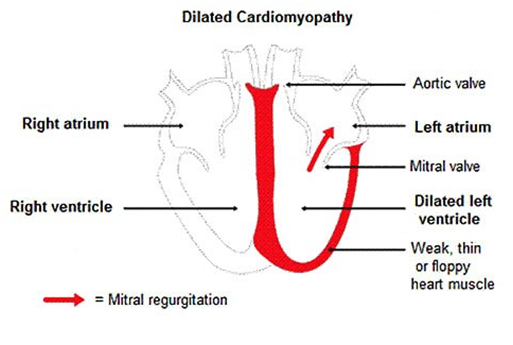 Mitte der 90er Jahre wurde mittels besserer Herzultraschallgeräte immer mehr bekannt über den DCM- Krankheitsprozess. Im Prinzip erweitert sich langsam aber sicher die linke Herzwand und im nach hinein auch das Septum zwischen linker und rechter Herzkammer. Somit tritt Leckage der linken Herzklappe auf und erweitert dadurch auch den linken Vorhof. Dies führt zu einer Störung der elektrischen Übertragung in der Vorhofwand, wodurch Herzrhythmusstörungen auftreten können.